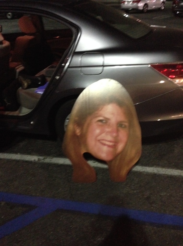 So, we waited. And when then it came time for the annual Party Parent’s Prank. And we had 14 life-sized Nancy Masks. And, in Nancy’s living room, was a Big Floating Nancy Head. The temptation was just too real to ignore.