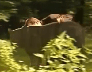 Undaunted, the journalist continues. The bear was sighted again: “This recreation identifies how witnesses say the bear escaped into the woods.” Yes, the reporter, ducking behind the cutout of the bear, shows it galloping off like a thoroughbred racehorse to “escape” as if it were some sort of LA Freeway car chase. I suspect that the bear was actually going home to binge-watch The Bear on Hulu.