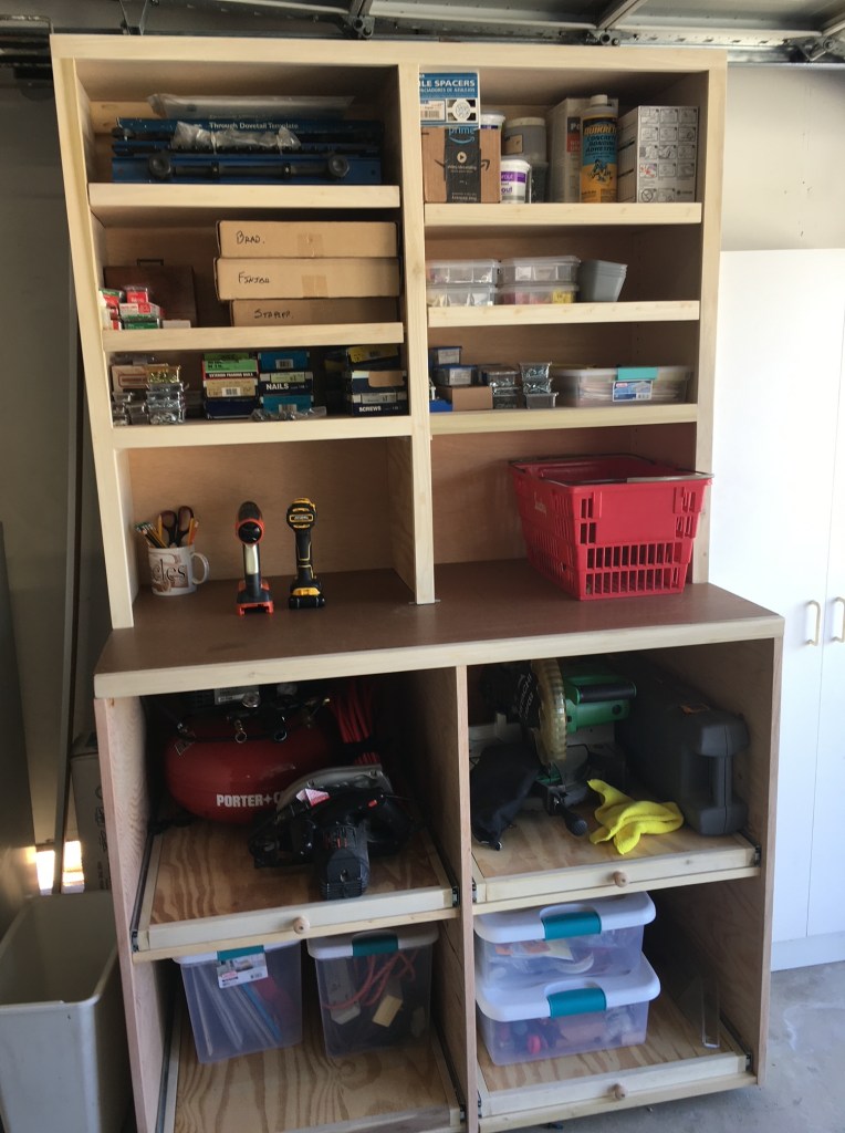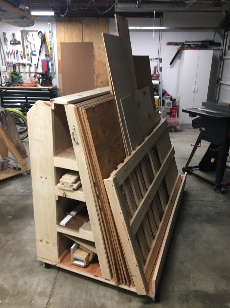 Along the way I’ve made a few cabinets, a wood storage cart, a couple of tables, a “mudroom” for California and a few other assorted odds and ends (I’m the odd one in that arrangement; the ends do NOT justify the means here).
