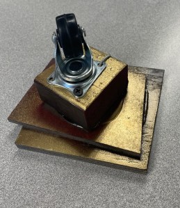 You see, the next day (a performance day) I nailed together some scraps of wood and spray paint it black. I remember that it was still wet when I went to the hardware store and bought a cheap caster to put on top. A variety of nails and screws later, it was born. The funny thing is this – that is precisely how props are fixed. Whatever you have on hand has to do.