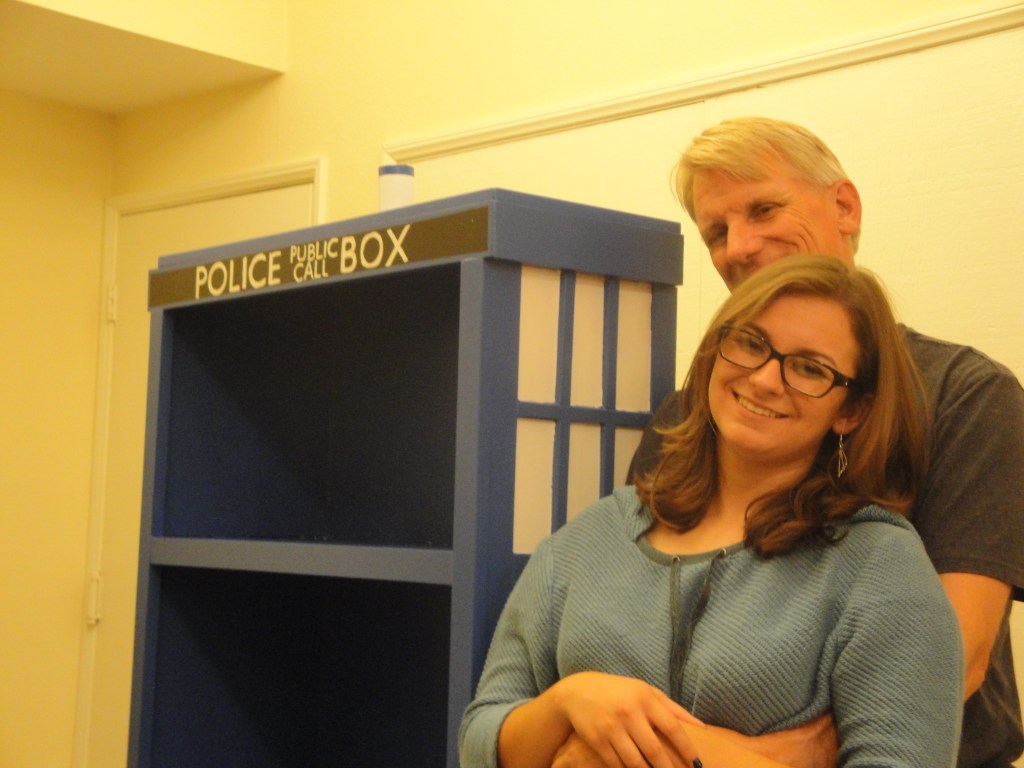 Back in 2015, when my daughter Mollie was a teenager, we designed and built a Dr. Who bookcase, with the limited tools I had on hand. We’d dado in the shelves, cut the trim, make windows together.