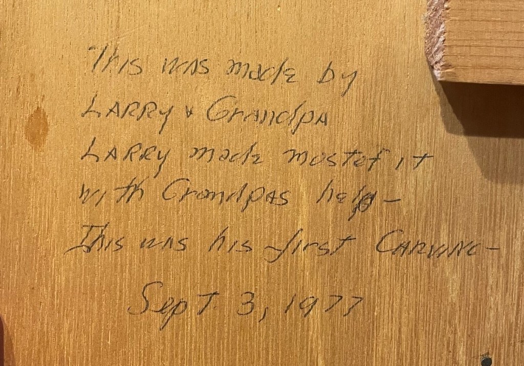 In any case, Gramps did ultimately let me try to do some wood carving. Yes, we can tell that I am certainly NO artist. A comparison of his eagles and mine is provided as proof.